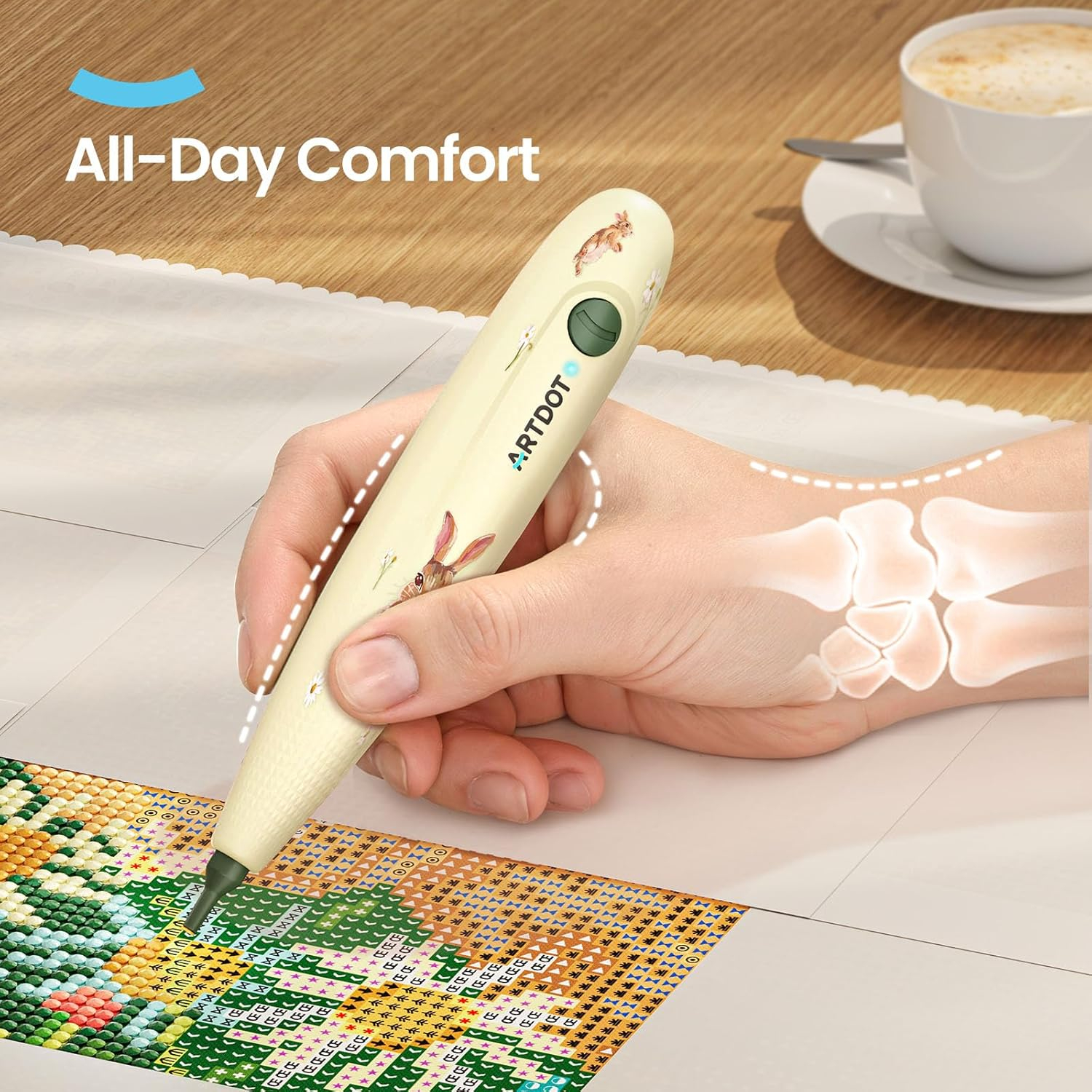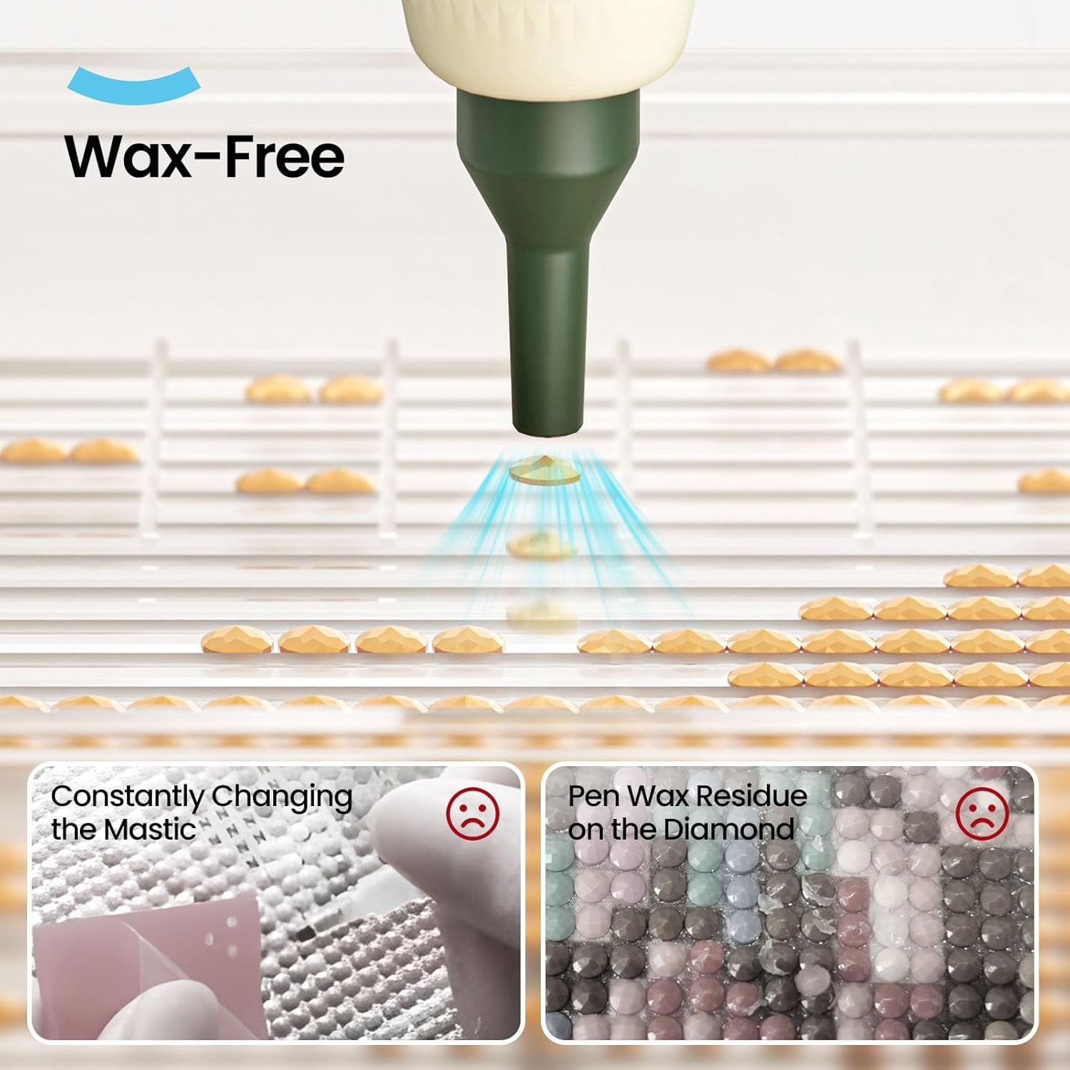 Stilou electric, wireless, cu aspiratie, pentru goblenurile cu diamante. Instrumentul va deveni unul de nelipsit din trusa dumneavoastra datorita faptului ca va permite sa plasati diamantele cu precizie, fara ceara. Bateria tine pana la 6 ore, nivelul de zgomut este sub 40 dB, iar design-ul ergonomic, de poveste, va va indemna sa va creati cu drag si fara efort propriile povesti.