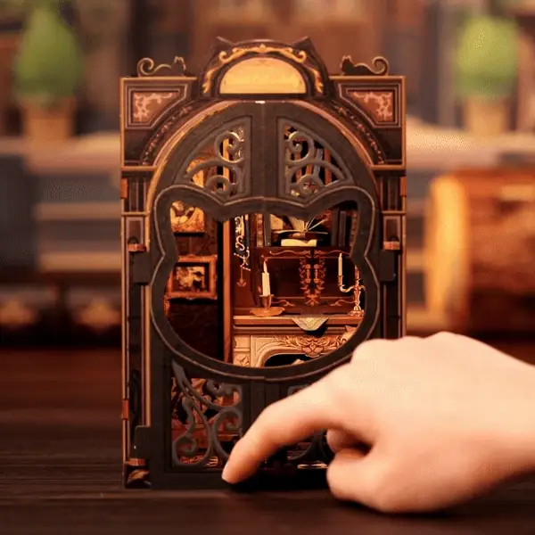 Book Nook / Cotorul de carte este un proiect de diorama DIY in miniatura conceput pentru a se potrivi intre cartile de pe un raft. Aceste truse fermecatoare de bricolaj creeaza o mica scena detaliata care adauga o nota de magie si fantezie bibliotecii tale sau oricarei camere din casa ta. Perfect pentru iubitorii de carti, pasionatii de bricolaj si oricarui pasionat de proiectele creative. Cotoarele de carte (book nooks) va transforma spatiul intr-o fereastra catre alta lume.