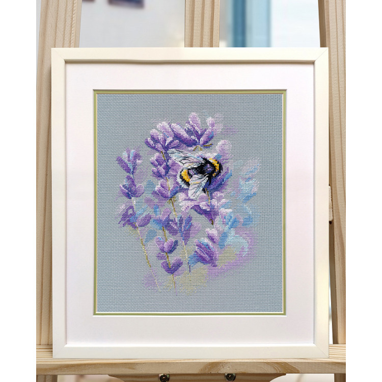Set de brodat in cruciulita, Albina si lavanda. Setul contine panza, 22 de seturi de ate colorate, ac, schema de realizare (diagrama) si instructiuni. Da start creativitatii!