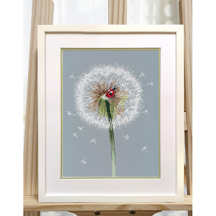 Set de brodat in cruciulita, Papadie. Setul contine panza, 11 de seturi de ate colorate, ac, schema de realizare (diagrama) si instructiuni. Da start creativitatii!