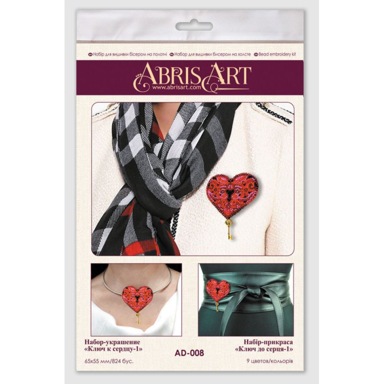 Set decorativ (brosa) Cheia inimii.Setul contine: panza naturala, din bumbac, 9 culori, 824 margele, ace pentru broderia cu margele, sistem de prindere, fetru, elemente decorative, instructiuni. Da start creativitatii!