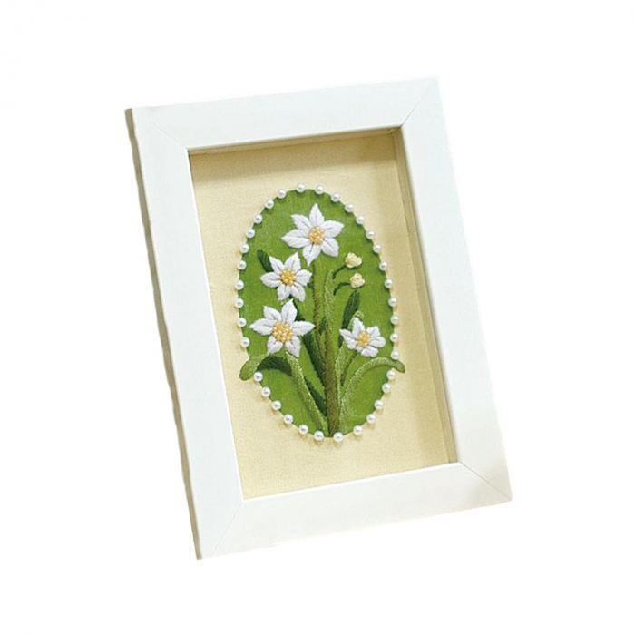 Cu ajutorul acestui set de broderie veti realiza niste frumoase imagini cu buchete de flori, pe o baza de panta preimprimata, cu ata tip mouline. Broderiile sunt completate de margele si perle. Broderia finita va iesi in evidenta cu ajutorul ramei inclusa in pachet. c