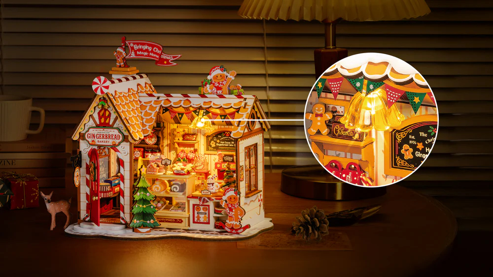 Casuta de turta dulce te duce direct intr-o mica brutarie de sezon: o casuta plina de bunatati, cu vitrine, borcane si ornamente care par rupte dintr-o poveste cu turta dulce. Pe masura ce asamblezi, apar tot mai multe detalii “dulci” (decoruri de acadele, glazura, ambalaje si mici accesorii de sarbatoare), iar scena capata profunzime ca o diorama.