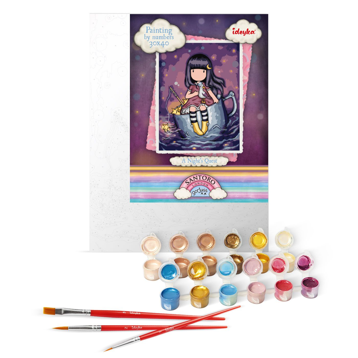| Pachetul include | Pachetul contine: panza din bumbac intinsa pe sasiu din lemn, setul de culori acrilice numerotate, 3 pensule de diferite marimi, checklist printat sau QR code (pastrati eticheta produsului pentru a putea accesa oricand diagrama on-line) |