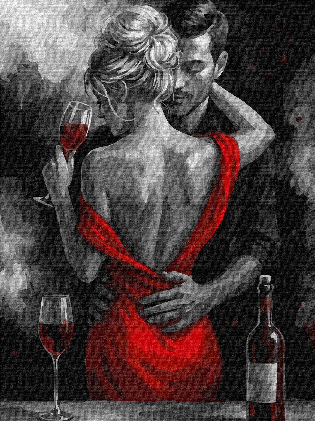 Set pictura pe numere cu sasiu inclus, Pasiune rosie, 30x40 cm. Pachetul contine: panza din bumbac intinsa pe sasiu din lemn, setul de culori acrilice numerotate, pensule de diferite marimi si accesorii pentru a crea un tablou spectaculos. Da start creativitatii!
