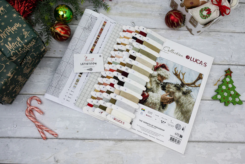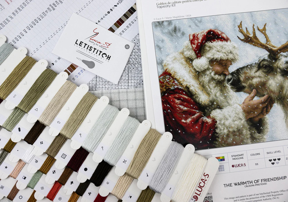 Set goblen de cusut, Caldura prieteniei. Setul contine panza caroiata 100 puncte/10 cm, 55 de seturi de ate colorate, ace, schema de realizare (diagrama) si instructiuni. Da start creativitatii!