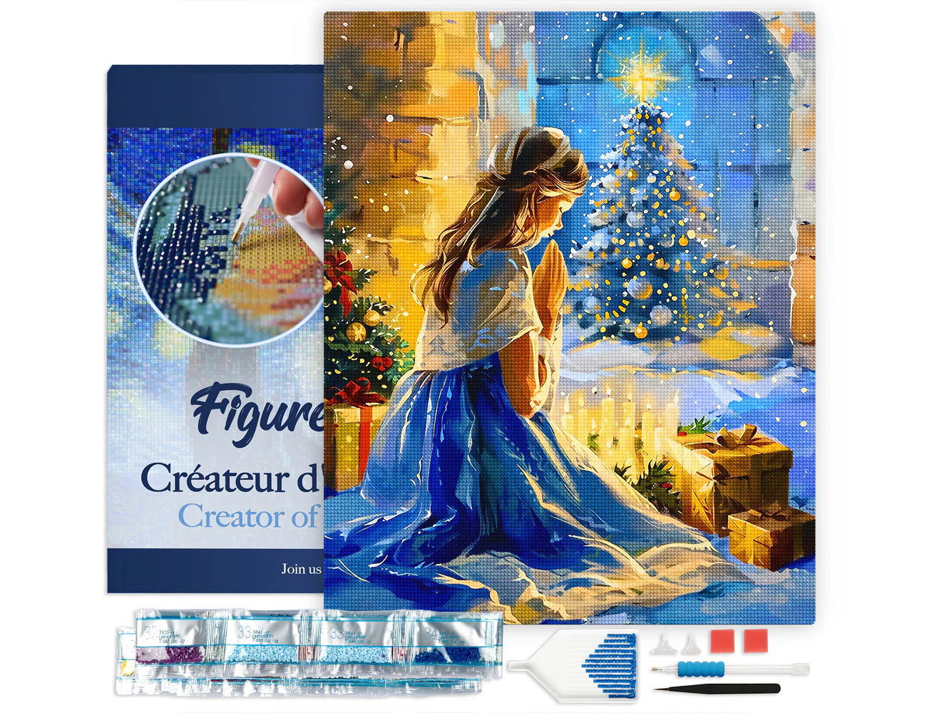 Set goblen cu diamante, cu sasiu, Rugaciune in noaptea de Craciun, 40x50 cm