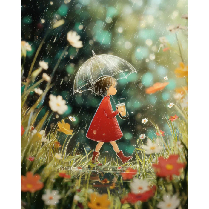 Set goblen cu diamante, cu sasiu, Zi cu ploaie, 30x40 cm