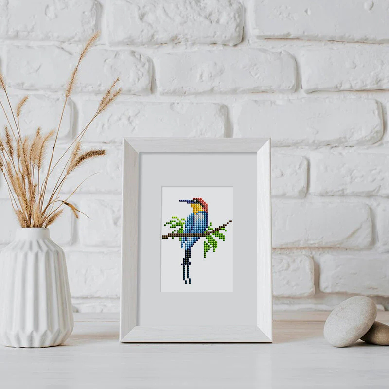 Mini set 12 goblenuri cu diamante, fara sasiu, Pasari, 18x15 cm