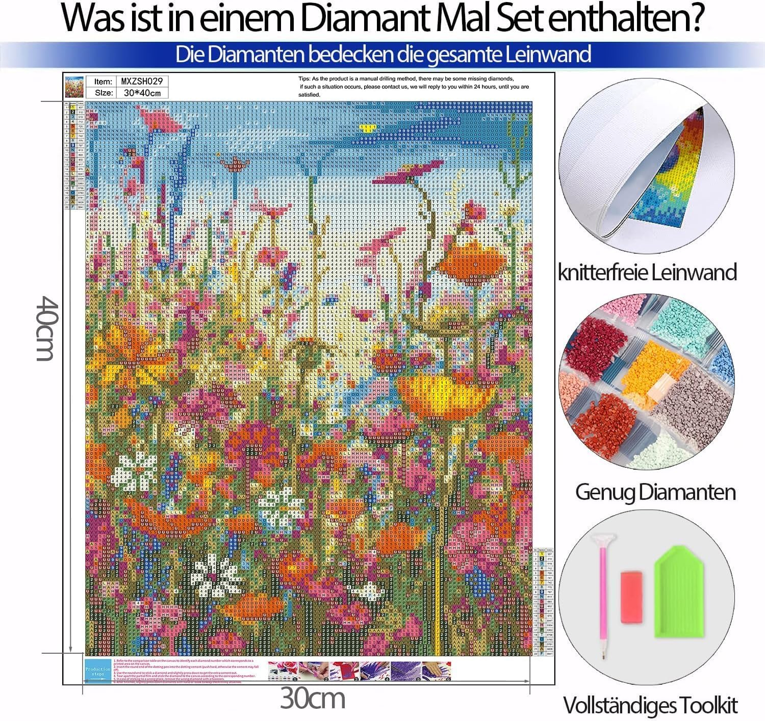 Set goblen cu diamante, fara sasiu, Flori de camp, 30x40 cm