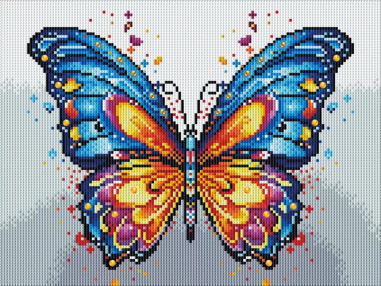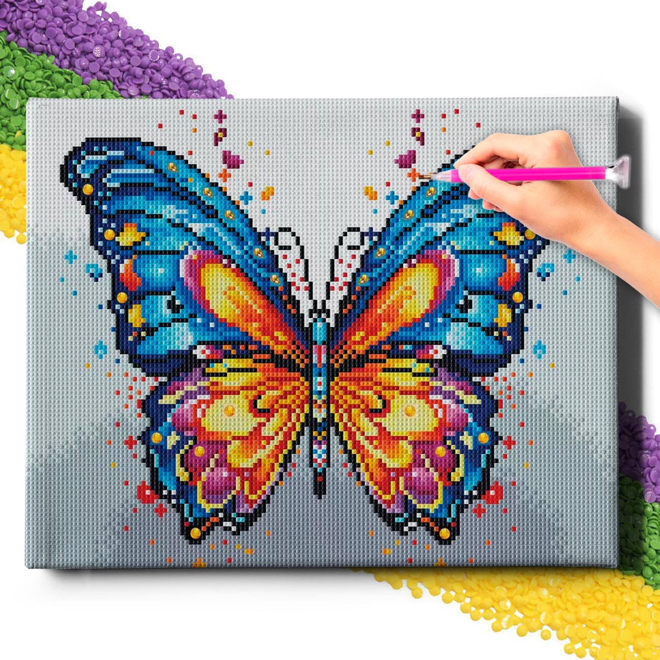 Set goblen cu diamante, cu sasiu, Fluture colorat, 30x40 cm