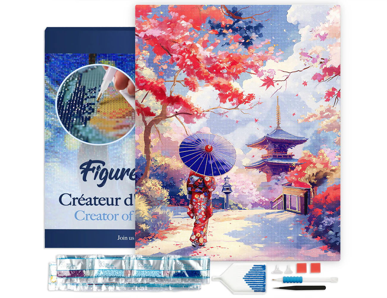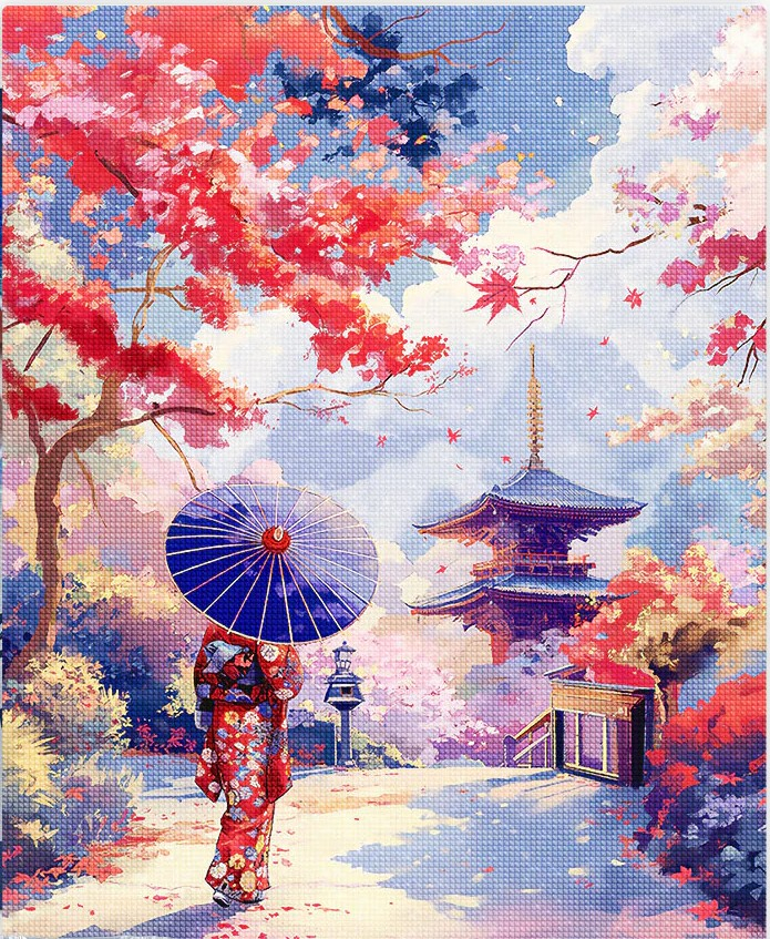 Set goblen cu diamante, cu sasiu, Gradina japoneza toamna, 40x50 cm