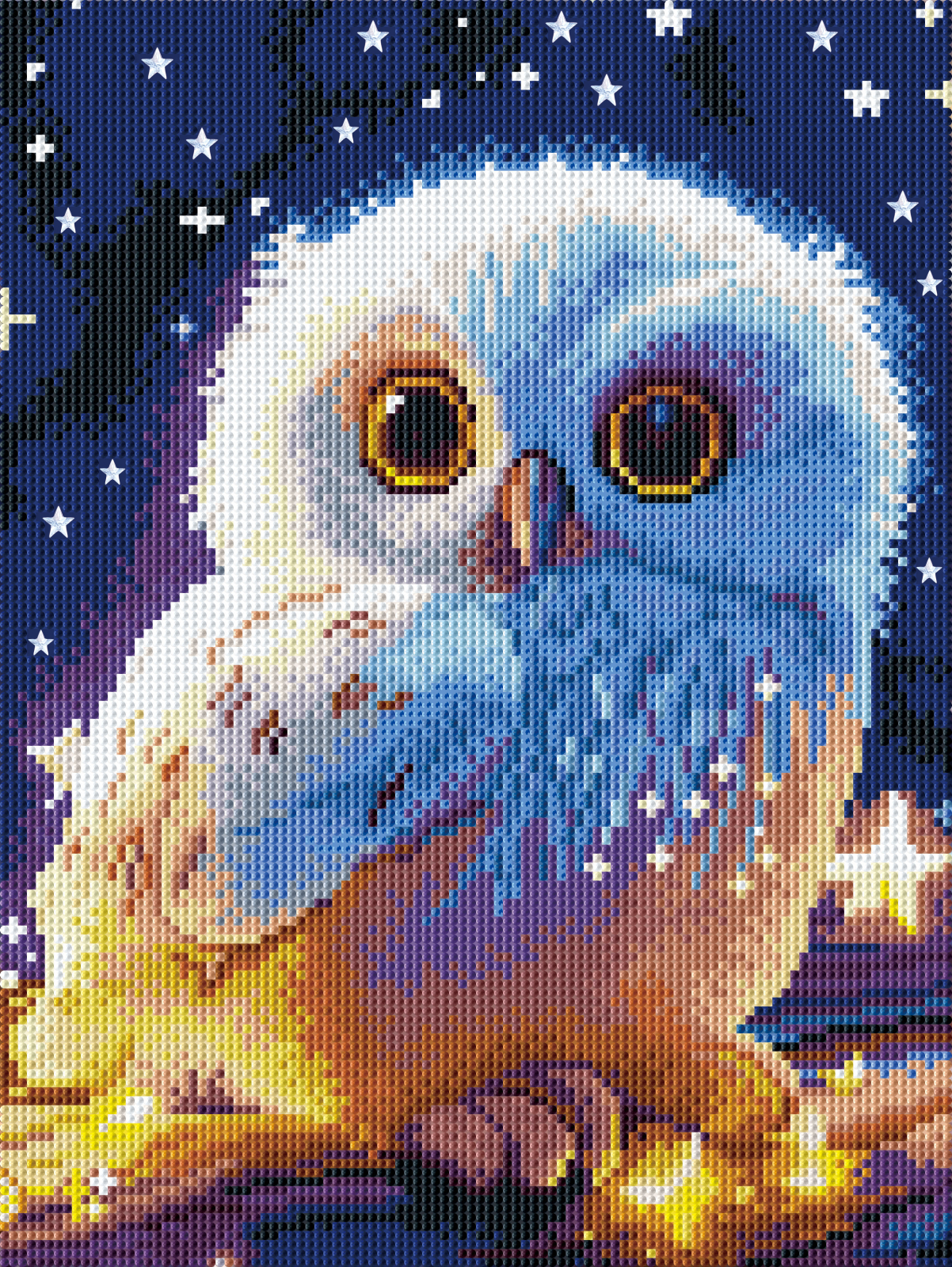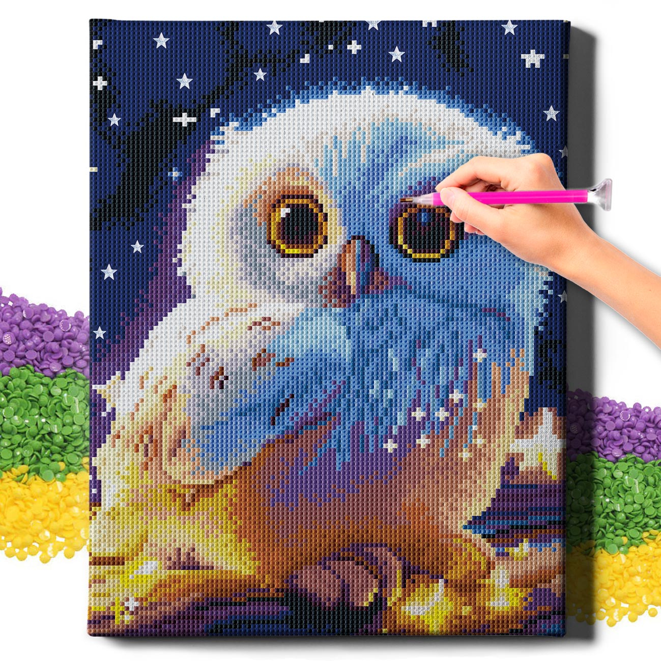 Set goblen cu diamante, cu sasiu, Pui de bufnita, 30x40 cm