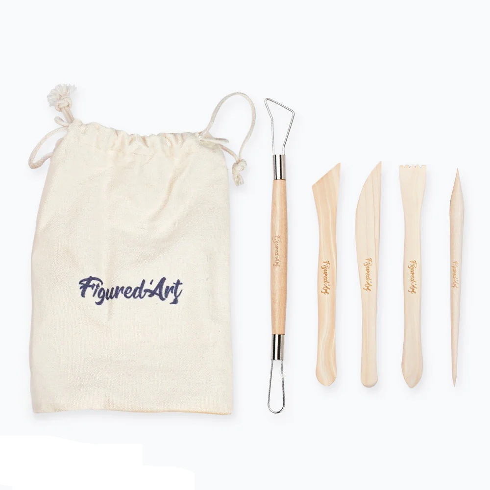 • Unelte din lemn prezentate elegant: Pentru o precizie optima, trusa include unelte premium din lemn si un cutit de degrosat, toate depozitate intr-o punga din material textil convenabil.