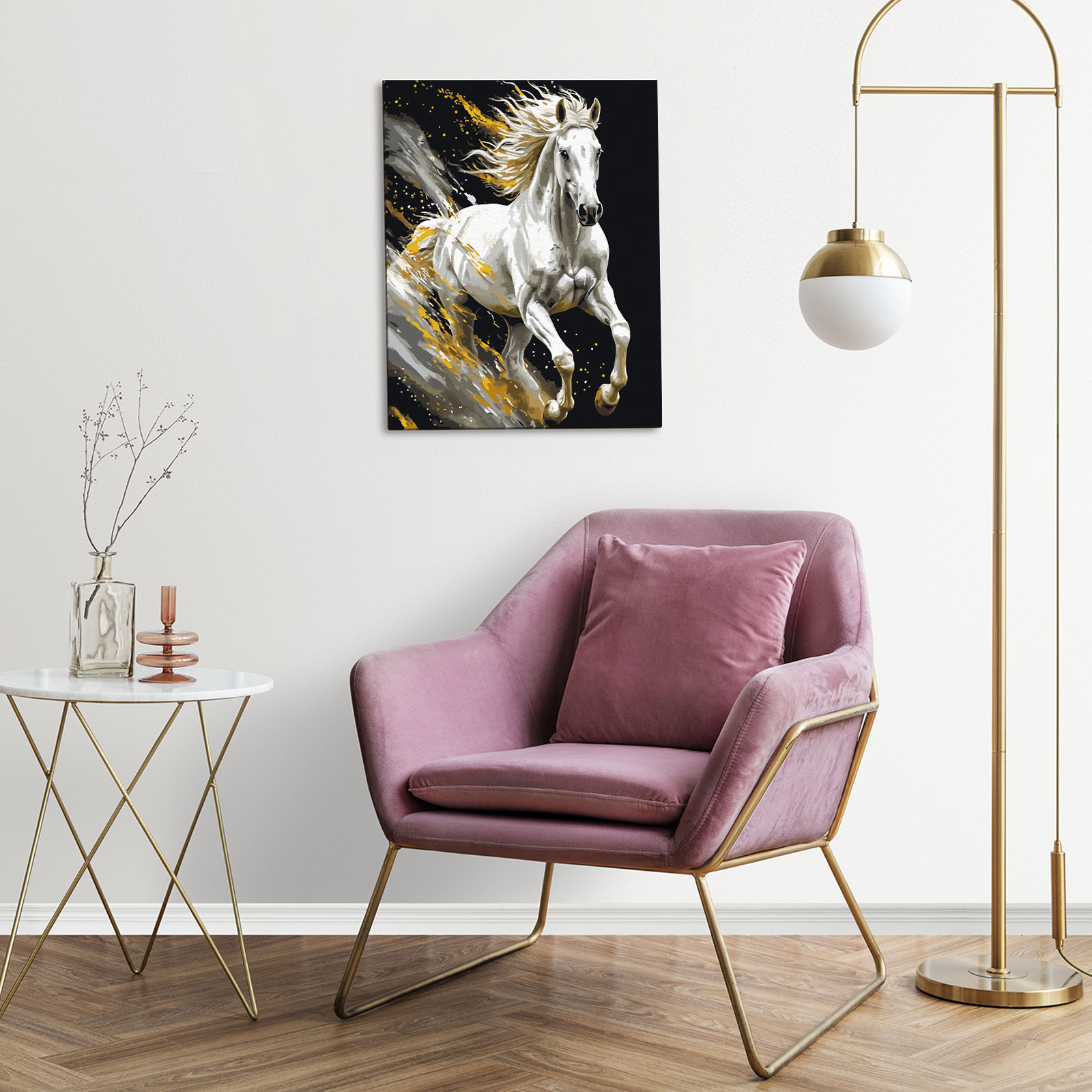 Varvikas Set pictura pe numere, cu sasiu, Armasar alb, 40x50 cm
