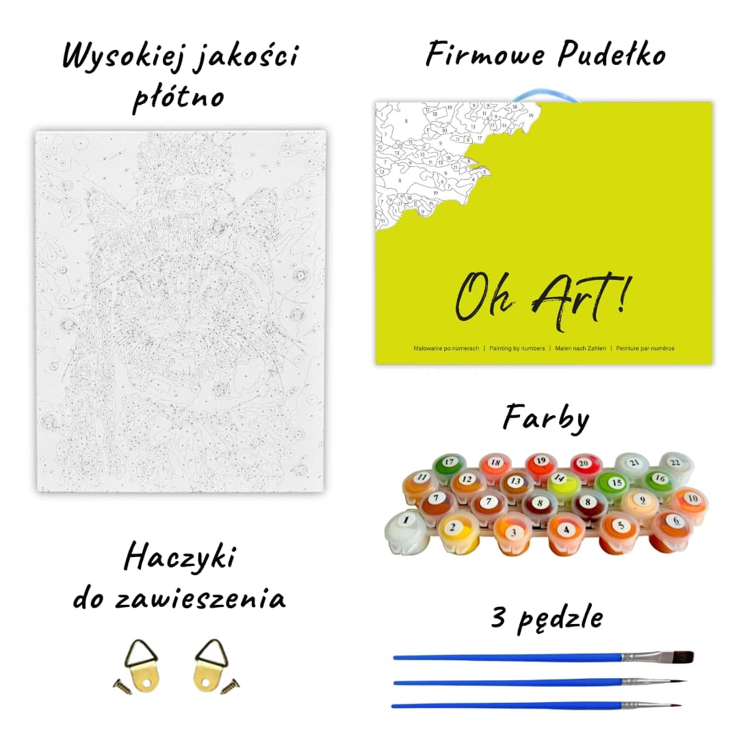 Despre panza Poti incepe sa pictezi din prima secunda. Spre deosebire de alte seturi picturi pe numere, acest set vine cu o panza deja intinsa pe o rama din lemn. Panza este din bumbac si are imprimate numerele culorilor pe care le vei folosi.
