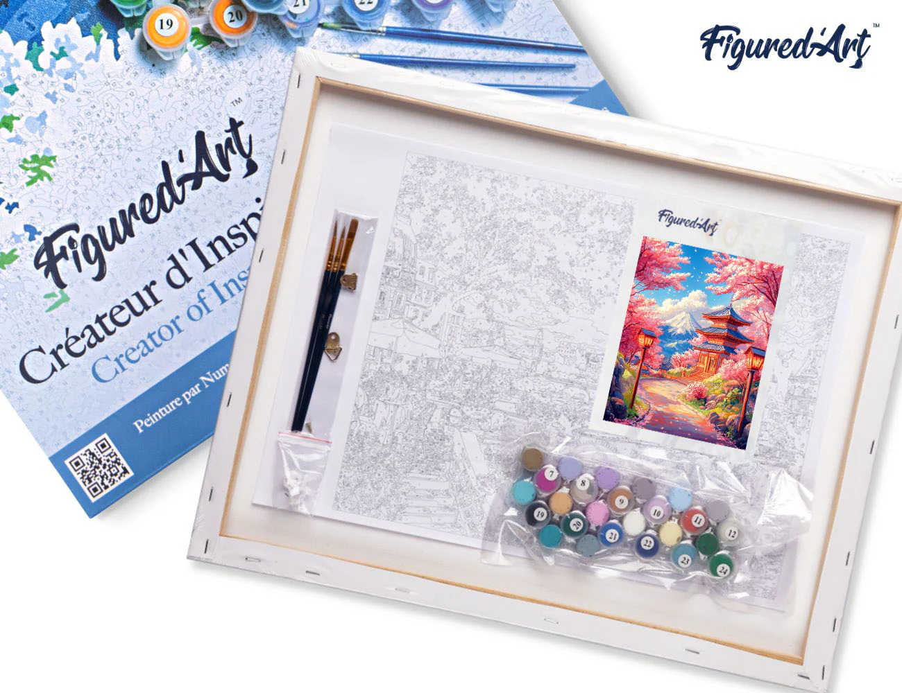 Figure d'Art Set pictura pe numere, cu sasiu, Drum de sakura spre pagoda, 40x50 cm