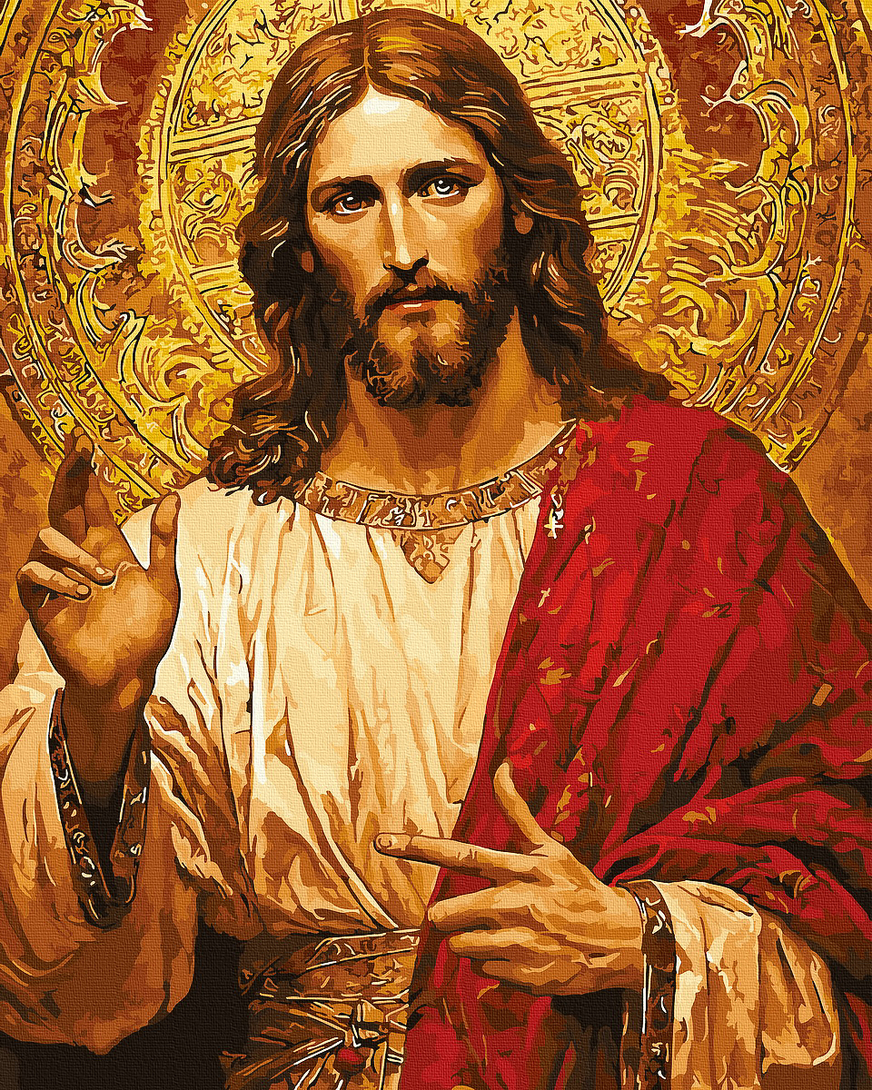 Set pictura pe numere cu sasiu, Isus cel milostiv, 40x50 cm. Pachetul contine: panza din bumbac intinsa pe sasiu din lemn, set de culori acrilice clasice, pensule de diferite marimi si accesorii pentru a crea un tablou spectaculos. Da start creativitatii!