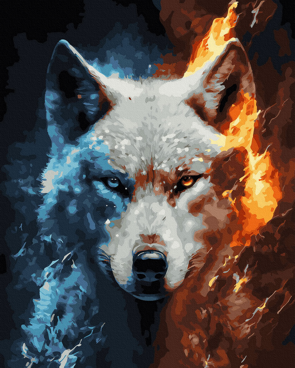 Set pictura pe numere, cu sasiu, Lupul elementelor, 40x50 cm