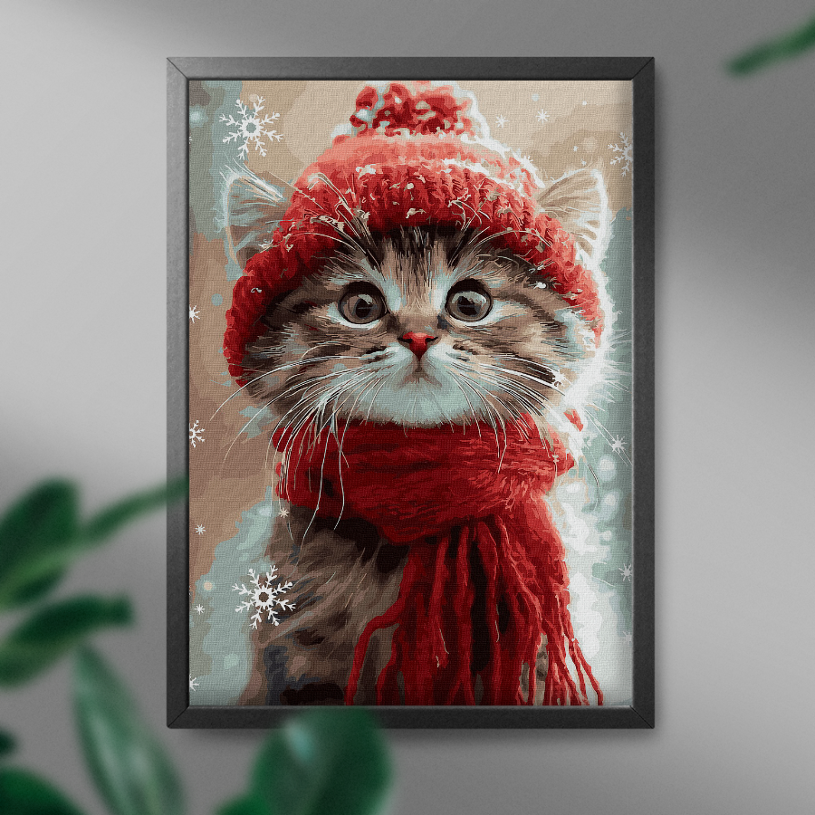 Set pictura pe numere cu sasiu, Mustati inghetate, 40x50 cm. Pachetul contine: panza din bumbac intinsa pe sasiu din lemn, set de culori acrilice clasice, pensule de diferite marimi si accesorii pentru a crea un tablou spectaculos. Da start creativitatii!
