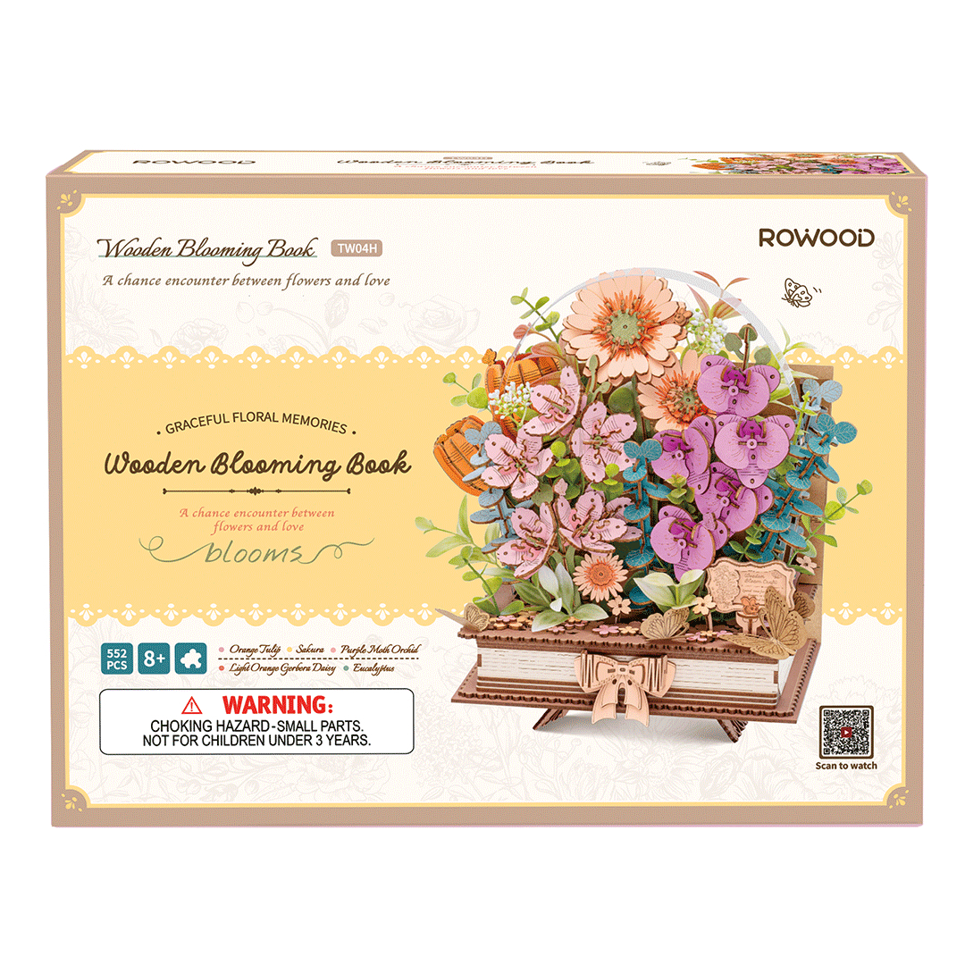 Puzzle 3D, din lemn, Carte cu flori, 552 piese