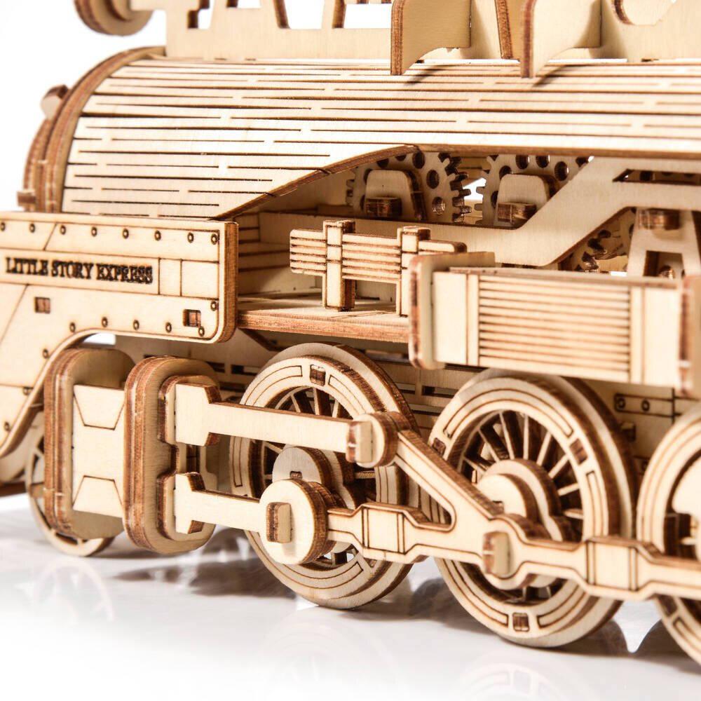Puzzle 3D din lemn  Locomotiva cu aburi, cu detalii atent gravate si roti care ii dau un aspect realist. Se monteaza pas cu pas, este o activitate relaxanta si rezultatul final arata excelent ca piesa de decor sau cadou creativ. Construieste. Retraieste. Admira. Produs STEM pentru parinti iscusiti si copii destepti!