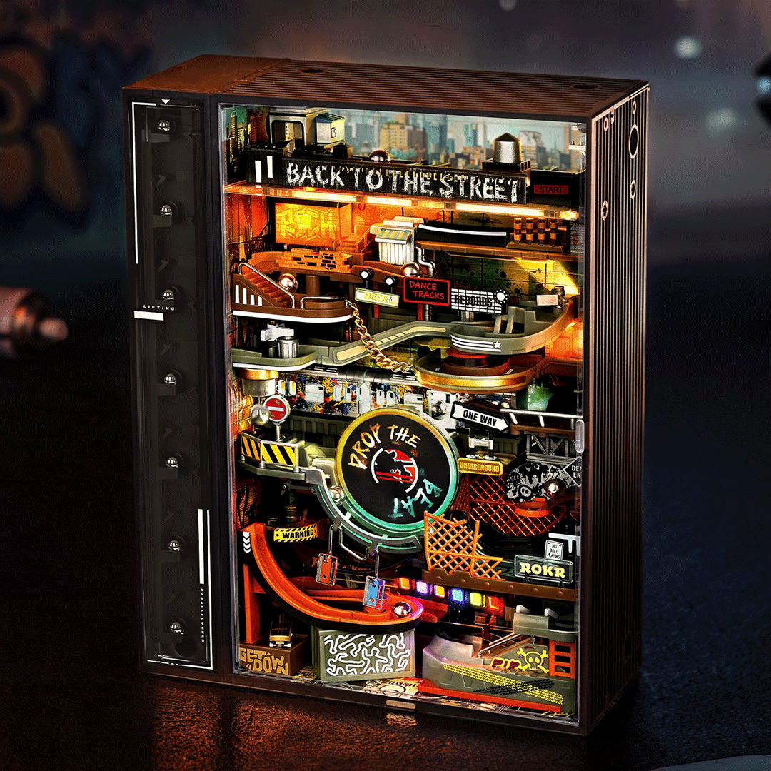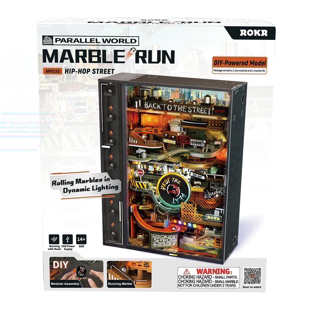 Strada Hip-Hop te va face sa-ti amintesti de acele zile alaturi de gasca ta, cand breakdance-ul, adidasii, graffiti-urile colorate si ritmurile puternice erau la moda. Această pista cu bile este stilizată pentru a reflecta viata stradala. Divertismentul este oferit de un vagon de tren transformat in galerie de arta, un teren de baschet 3x3 si un patinoar luminat cu neon. Nu este vorba doar despre stil si accesorii, fii placut surprins de cele sase cutii luminoase interne care reactioneaza la sunetele ambientale, creeand efecte intermitente chiar si dupa ce bilele metalice s-au oprit din rostogolit. Cu peste o suta de secvente de iluminare aleatorii, este la fel de distractiv și atragatoar ca o bataie de beatbox! Ca o noua extensie la seria Lumi paralele se conecteaza perfect cu