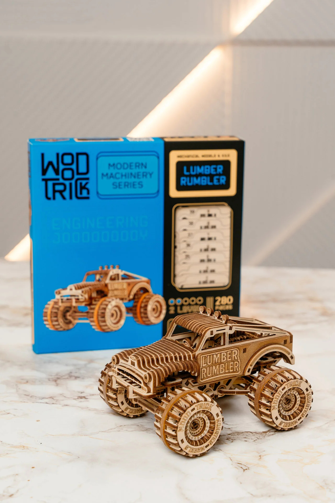 Lumber Rumbler este o combinatie perfecta intre puzzle, model mecanic si jucarie functionala, fiind potrivit atat pentru pasionatii de constructii DIY, cat si pentru cei care apreciaza vehiculele spectaculoase.