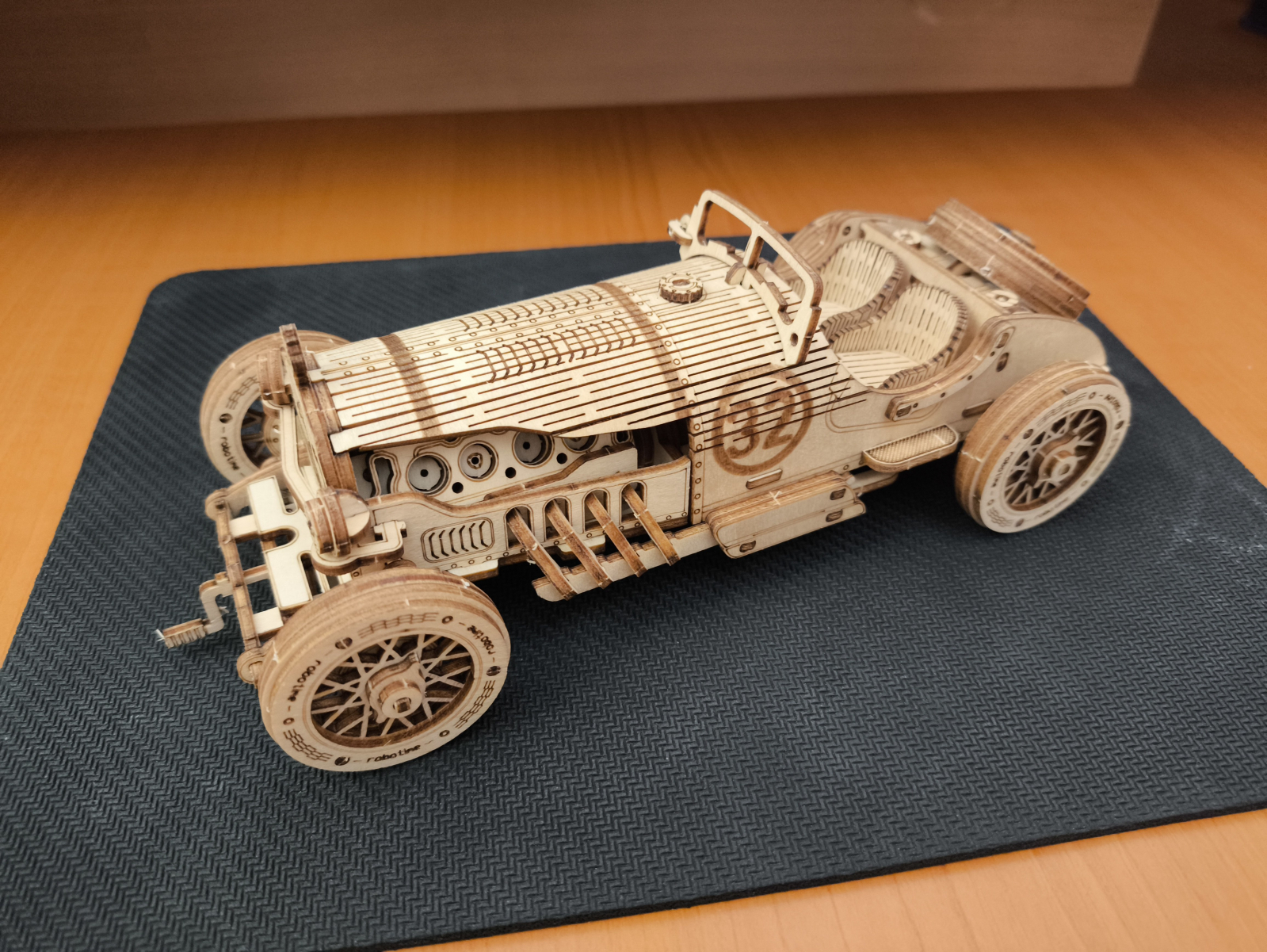 Puzzle 3D din lemn, model Masina de curse cu 220 de piese
