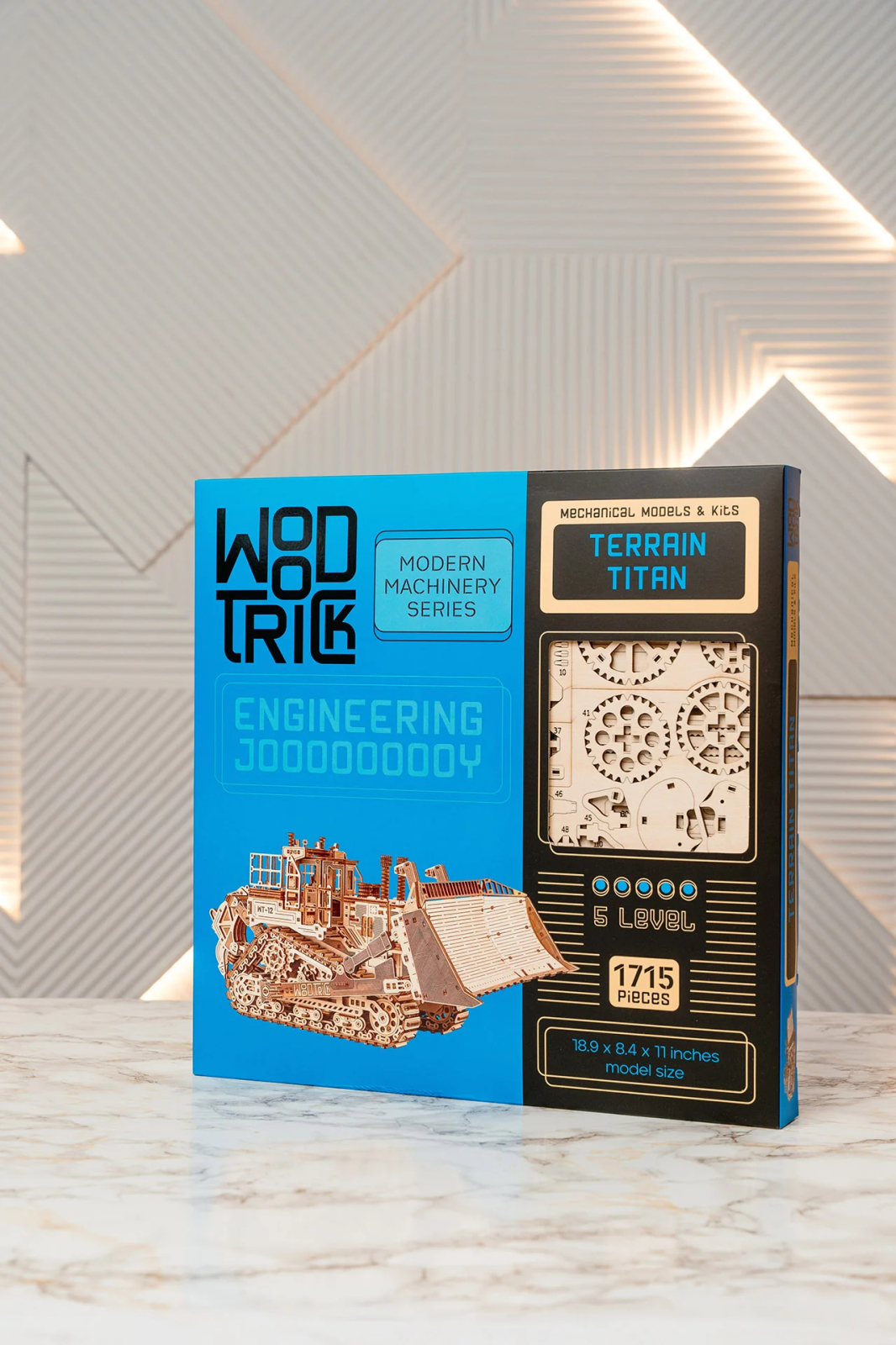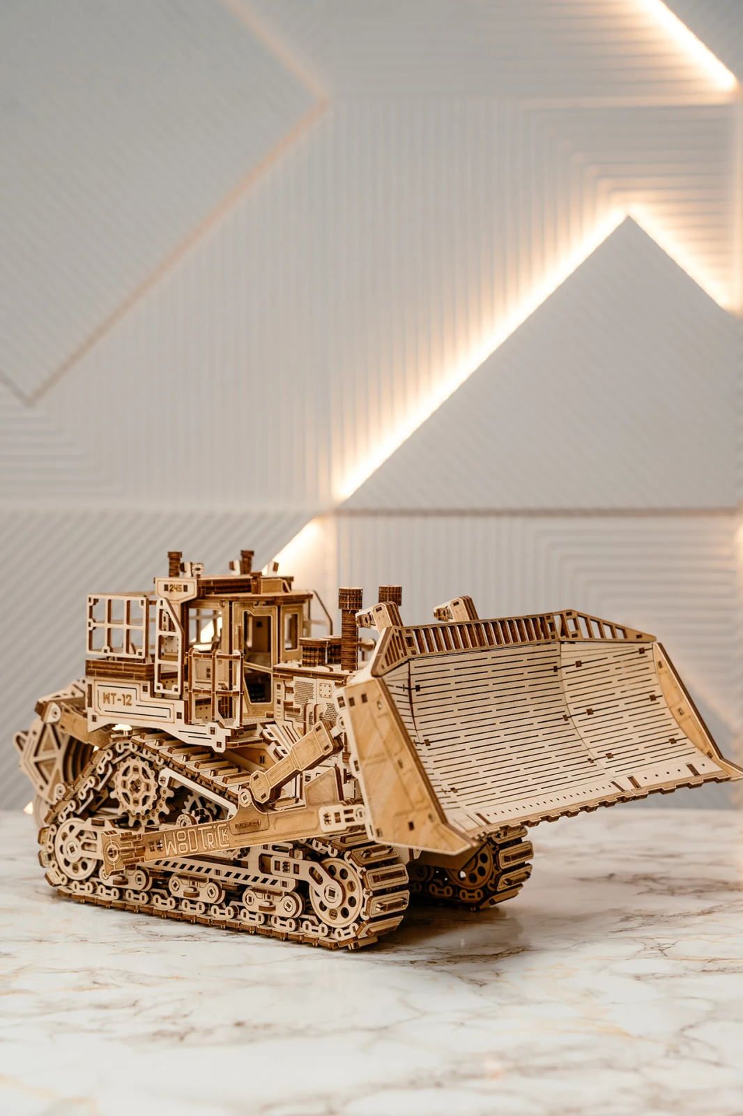 🏗️🔧🚜 Inspirat de utilajele grele folosite pe santiere si in lucrari de infrastructura, acest puzzle mecanic recreeaza cu mare fidelitate un buldozer puternic, cu senile robuste si lama frontala ampla, pregatita sa "mute muntii". Fiecare piesa contribuie la formarea unui mecanism complex care imbina designul tehnic cu precizia constructiei din lemn.