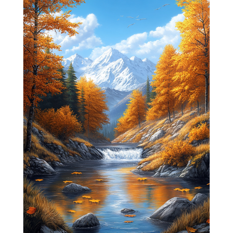 Set goblen cu diamante cu sasiu inclus, Toamna, 30x40 cm. Pachetul contine: panza de lucru cu imagine tiparita si suprafata adeziva, margele tip diamante rotunde, sortate dupa culori cu simboluri ce corespund cu locul lor pe imagine, o tavita pentru diamante, un recipient cu ceara speciala, un stilou special pentru prinderea si plasarea diamantelor si un ghid ilustrat de instructiuni. Da start creativitatii!