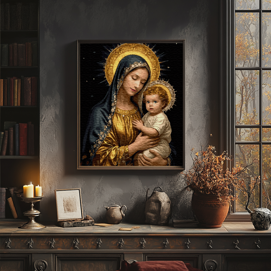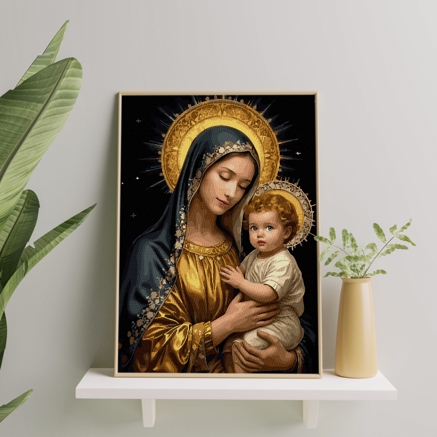 Set pictura pe numere, cu sasiu, Inima Mariei - culori aurii, 40x50 cm