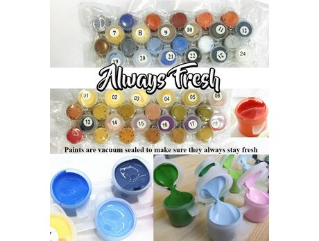 Despre vopseaua acrilica Setul complet de culori acrilice face pictura pe numere o activitate placuta si usoara. Vei sti exact ce culoare sa folosesti si unde.