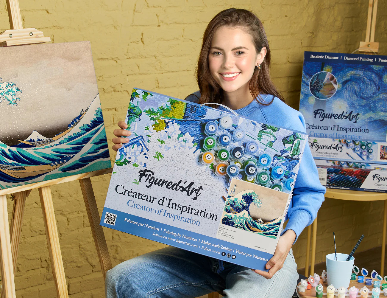 setul de culori acrilice numerotate, 3 pensule de diferite marimi,