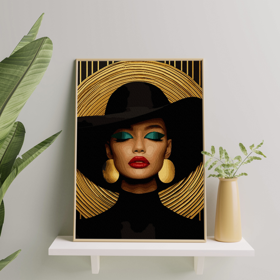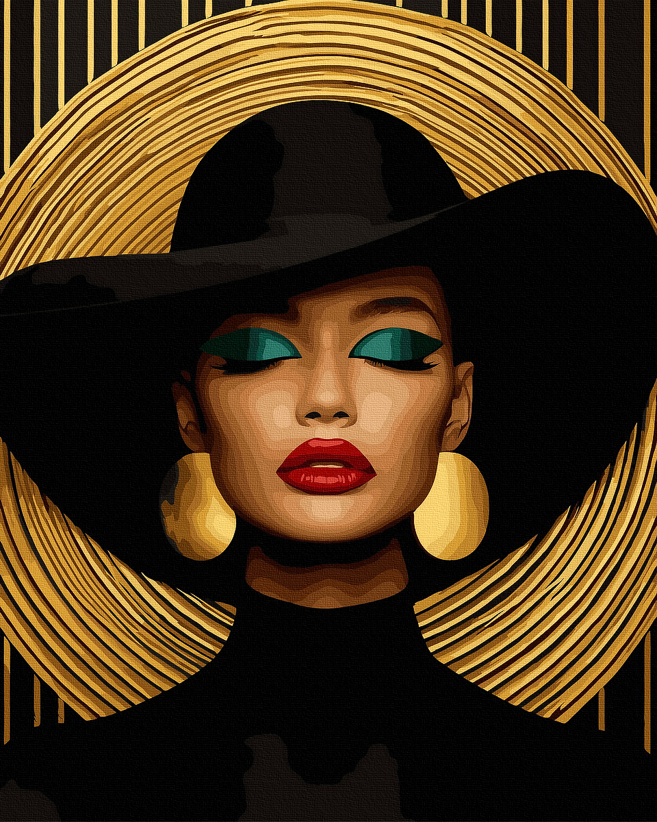 Set pictura pe numere, cu sasiu, Portret elegant - vopsea aurie, 40x50 cm