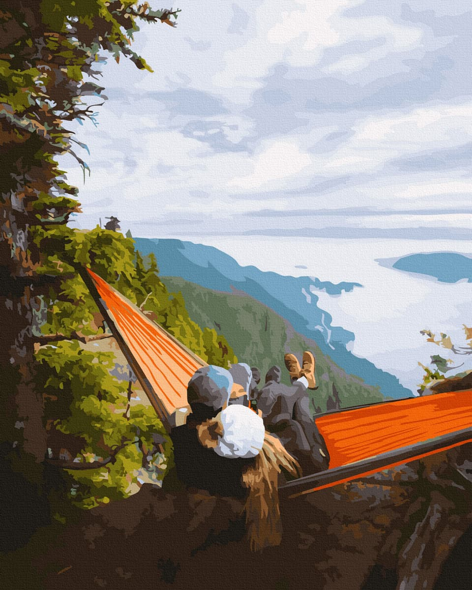 Set pictura pe numere cu sasiu, Senzatie de plutire, 40x50 cm. Pachetul contine: panza din bumbac intinsa pe sasiu din lemn, set de culori acrilice clasice, pensule de diferite marimi si accesorii pentru a crea un tablou spectaculos. Da start creativitatii!